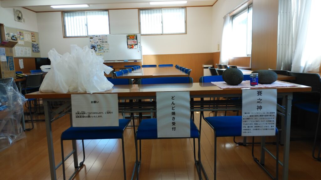 古くからの正月行事の一つでございまして、賽之神を会場にお越し頂き、正月飾りを燃やす行事でございます。