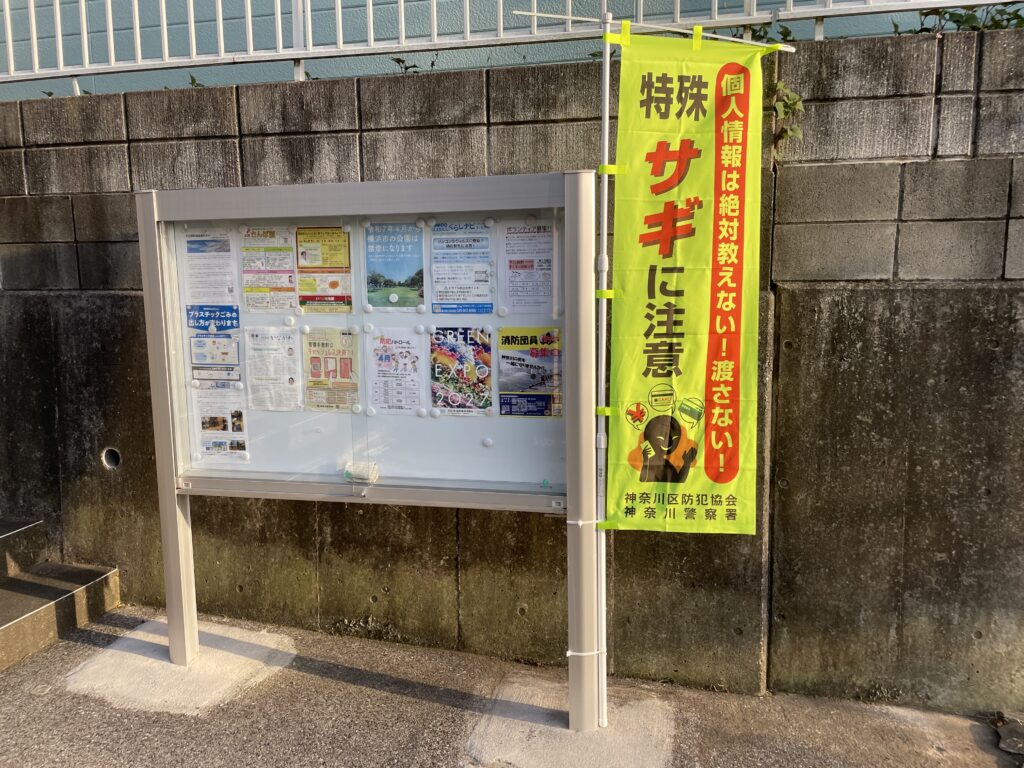 当自治会では、隔年で実施している「お祭り」「運動会」をはじめ各種地域活動を通じて親睦を図り、さらに防犯・防災・交通安全や社会福祉活動など、住みよい環境づくりに取り組んでいます。そこでは、子どもたちからお年寄りまで世代を超えて交流ができ、地域のつながりを強めています。そのための地域の方々への広報手段といたしまして①『掲示板』での ポスター掲示等による 行政・自治会のイベント活動のお知らせ②『回覧板』を通しては、上記①に加え「広報よこはま」「県のたより」による行政施策・災害・社会生活等に必要な情報をお届けしています。