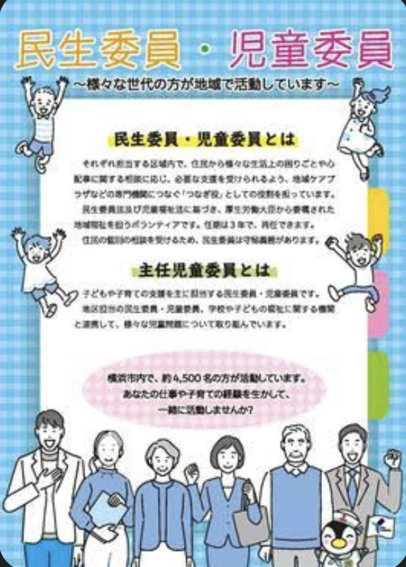民生委員は、民生委員法に基づき厚生労働大臣から委嘱された非常勤の地方公務員です。