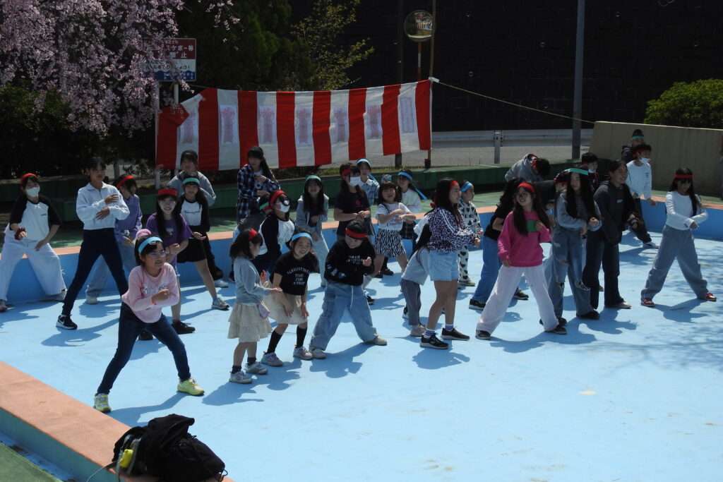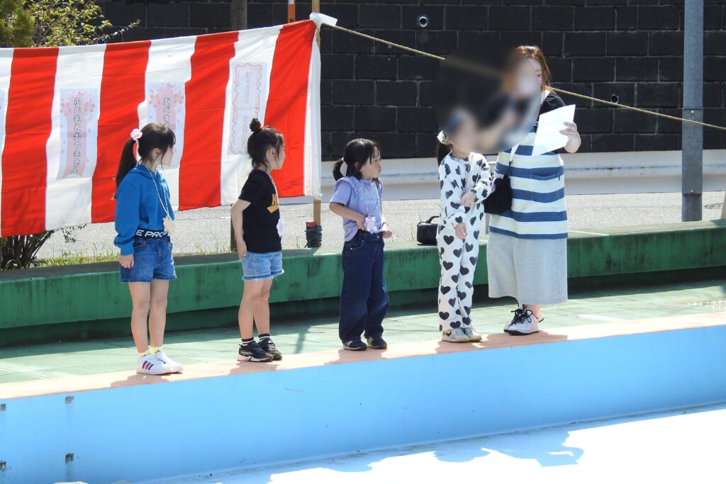 プールの中では子供達が紙芝居やソーラン節を楽しんでいましたが、そう言えば一年生を迎える会も行われ周りの人たちが声援を送っていました、大変初々しいものですね。