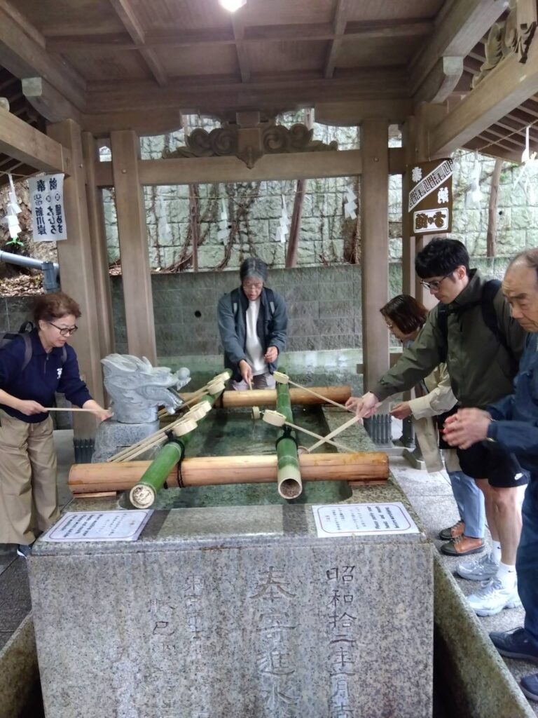 当日はお天気にも恵まれ、春らしい爽やかな陽気の中での外出となりました。江ノ島神社では、瑞心門の前で記念写真を撮影し、皆さまの笑顔あふれる一枚となりました。手水舎で心身を清めた後、皆さまでお参りをいたしました。