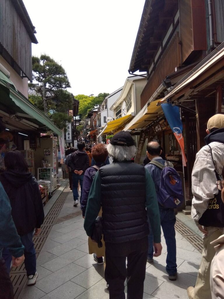 弁財天仲見世通りでは、磯の香りが漂う江ノ島らしい雰囲気の中、土産物店や食べ歩きのお店を眺めながら散策を楽しみ、会話も弾む和やかな時間となりました。
