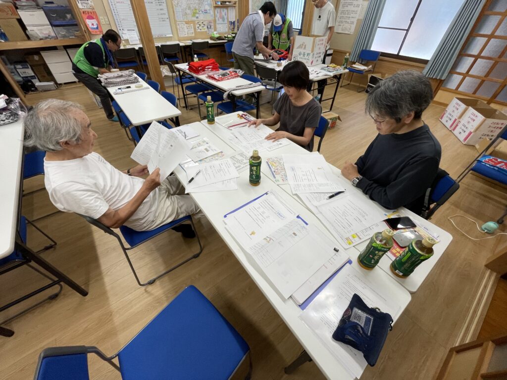 活動前には、会館にて防災委員による打ち合わせや、10月5日に予定している神明社の祭礼準備も行われ、地域拠点として会館を有効活用する機会ともなりました。