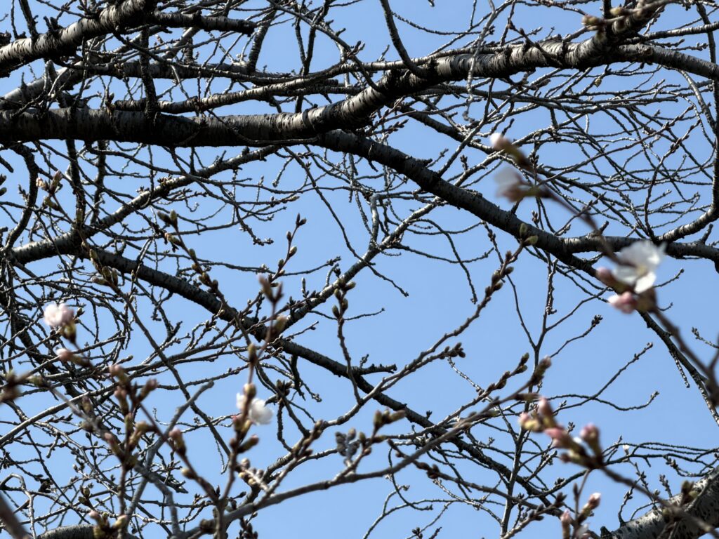 ほころび始めた蕾の中に、ひと足早く咲いた花があり、春の訪れを感じさせてくれました。