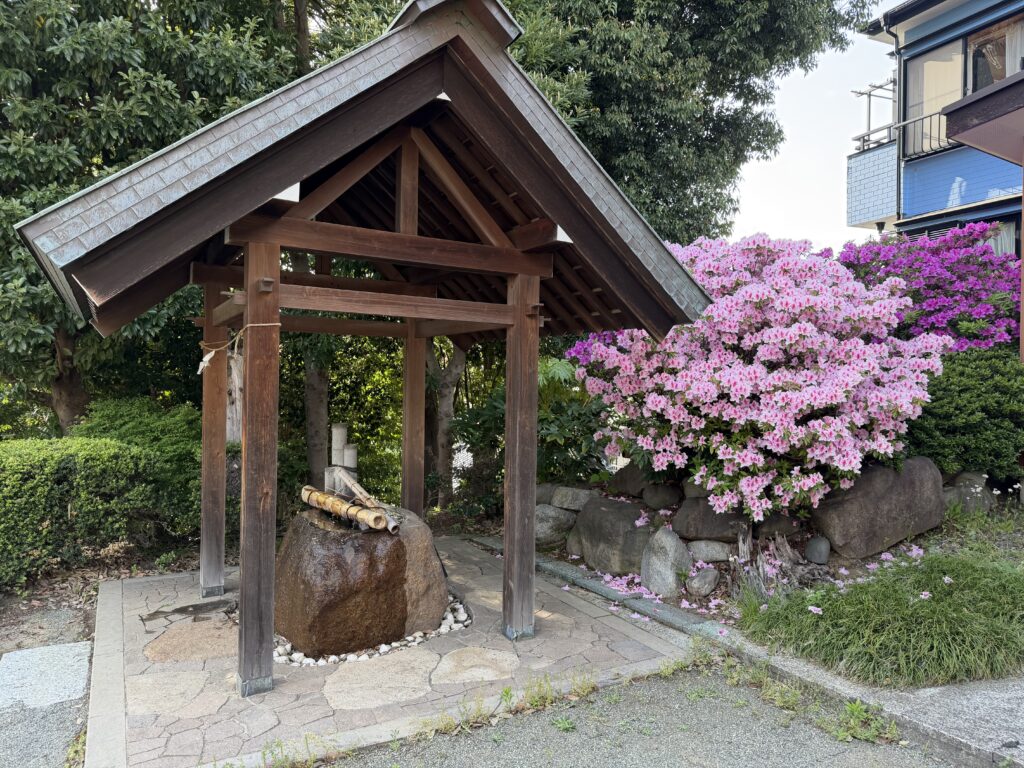 集合場所の神社では、手水舎のそばに咲くつつじが見頃を迎え、春の彩りに包まれた気持ちの良いひとときとなりました。